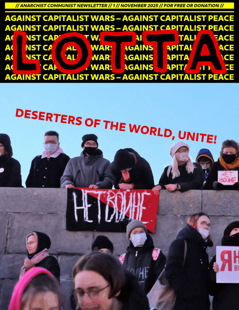The Lotta newsletter will publish texts that view reality from an anti-militarist, internationalist, and revolutionary defeatist perspective. We want to analyze and share the experiences accumulated over many generations in the struggle against the capitalist world and the wars it has caused.