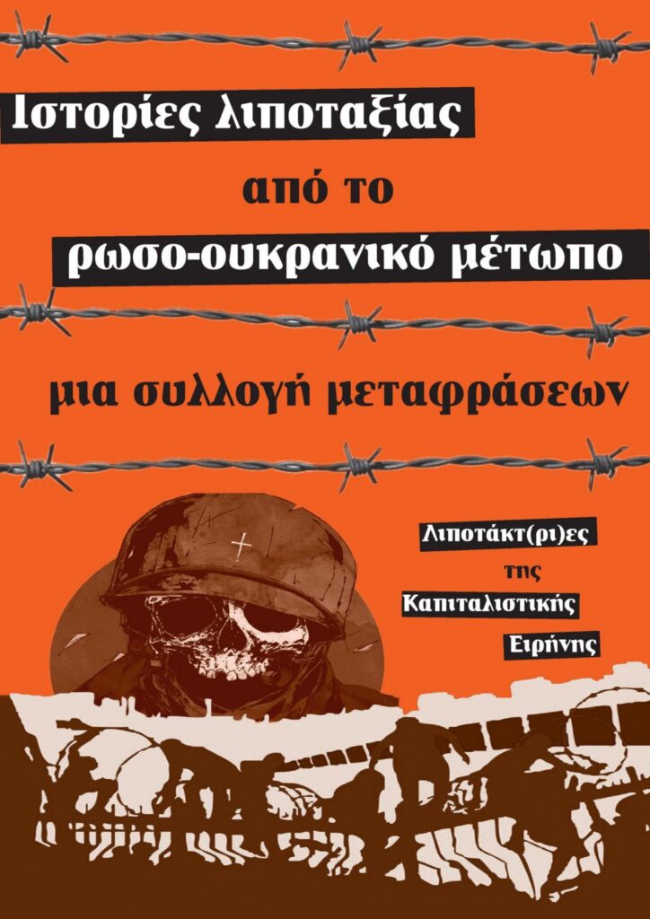 Η παρούσα έκδοση «Ιστορίες λιποταξίας από το ρωσο-ουκρανικό μέτωπο, μια συλλογή μεταφράσεων» αποτελεί όπως υποδηλώνει και ο τίτλος της μια συλλογή αντιπολεμικού υλικού για την (αντι)πληροφόρηση και την υλική και πολιτική υποστήριξη της λιποταξίας. Τα κείμενα τα οποία περιέχονται και μεταφράστηκαν από τη συνέλευση μας κατά τη διάρκεια της προηγούμενης διετίας δεν επιλέχθηκαν απλά και μόνο για το ενδιαφέρον τους. Αντλήσαμε το σύνολο του υλικού μέσα από την πραγματική επικοινωνία μας με τους συντρόφους που το συνέταξαν στα πλαίσια της διεθνιστικής/ντεφετιστικής δικτύωσης σε πανευρωπαϊκό επίπεδο.